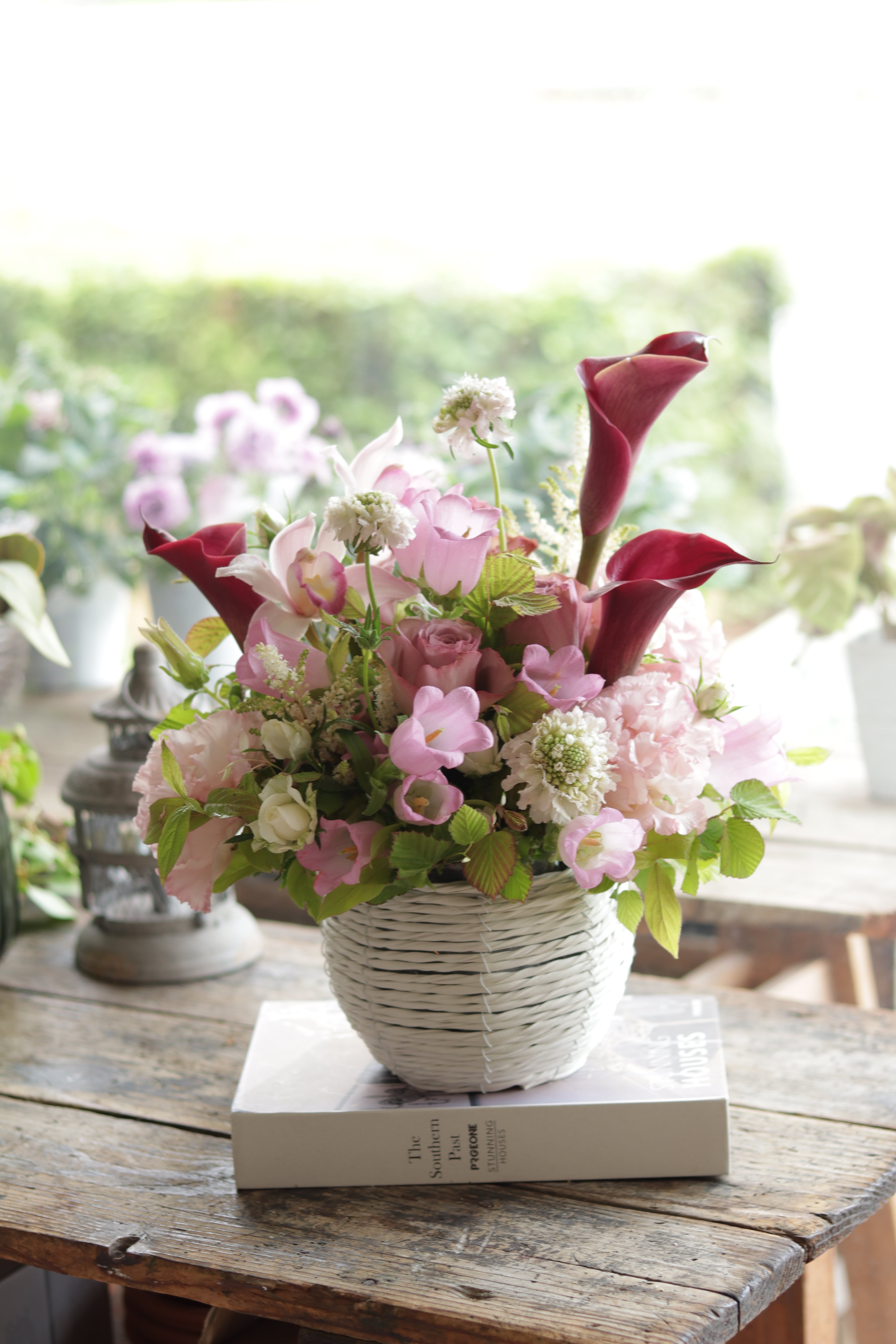 新鮮な季節の花材でお作りしたアレンジメントです。